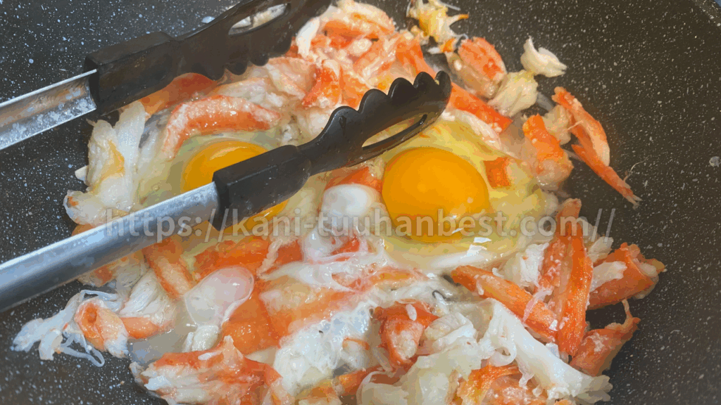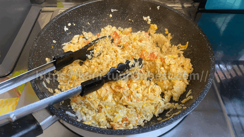 卵も絡めてしっかりと炒めていきます!この段階からすでに香ばしい匂いが・・・!